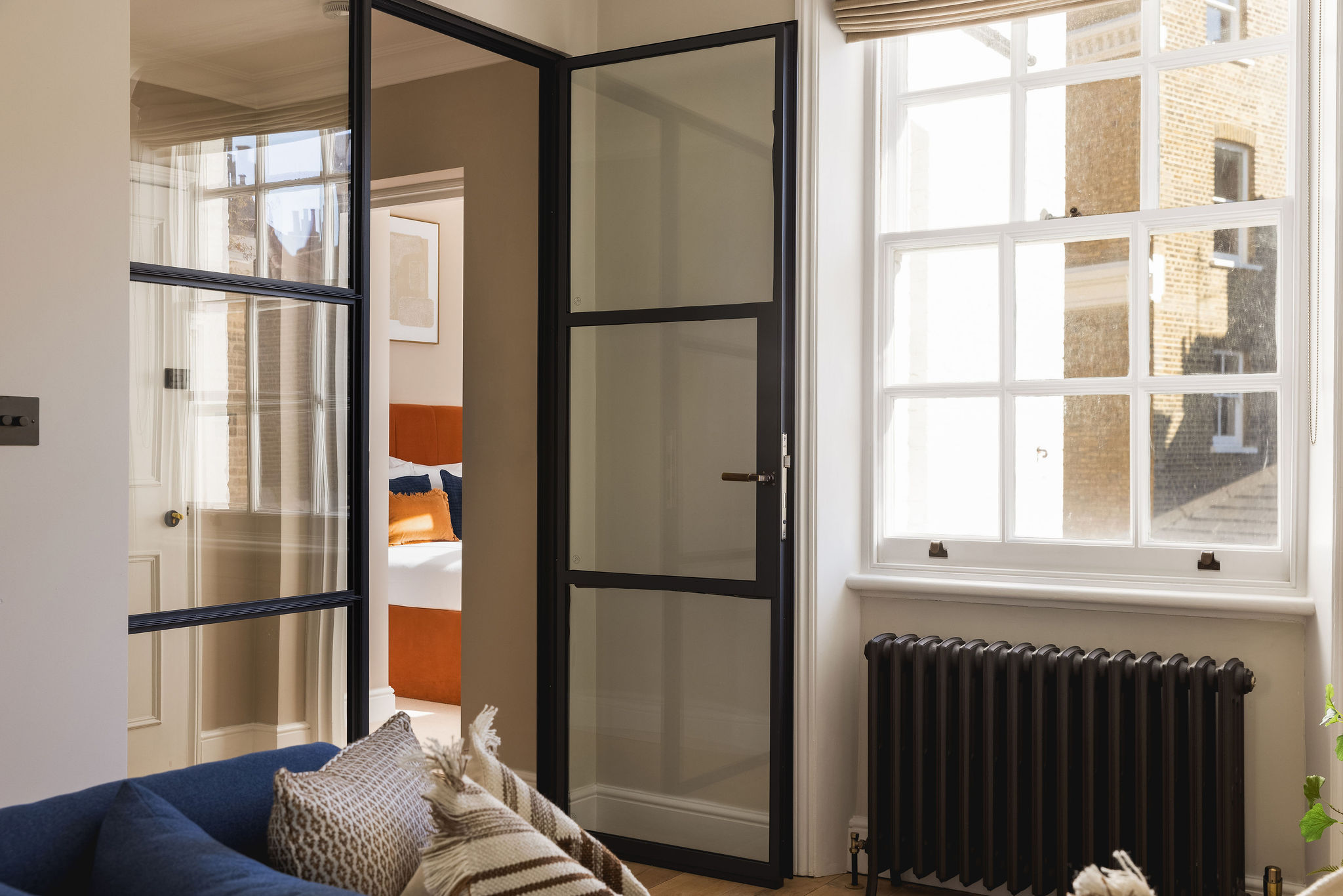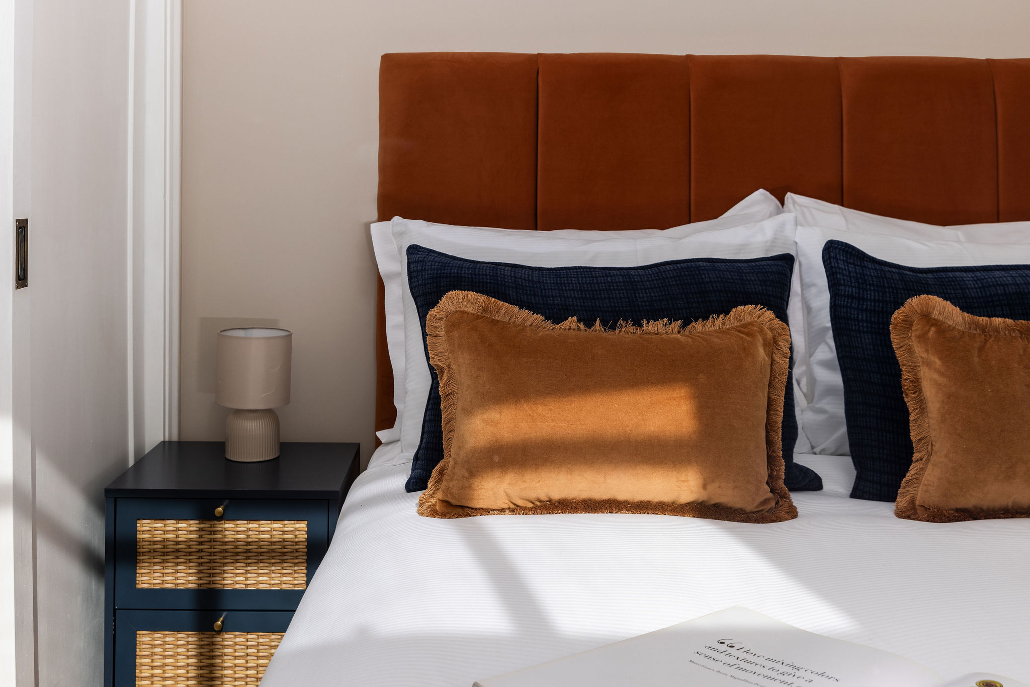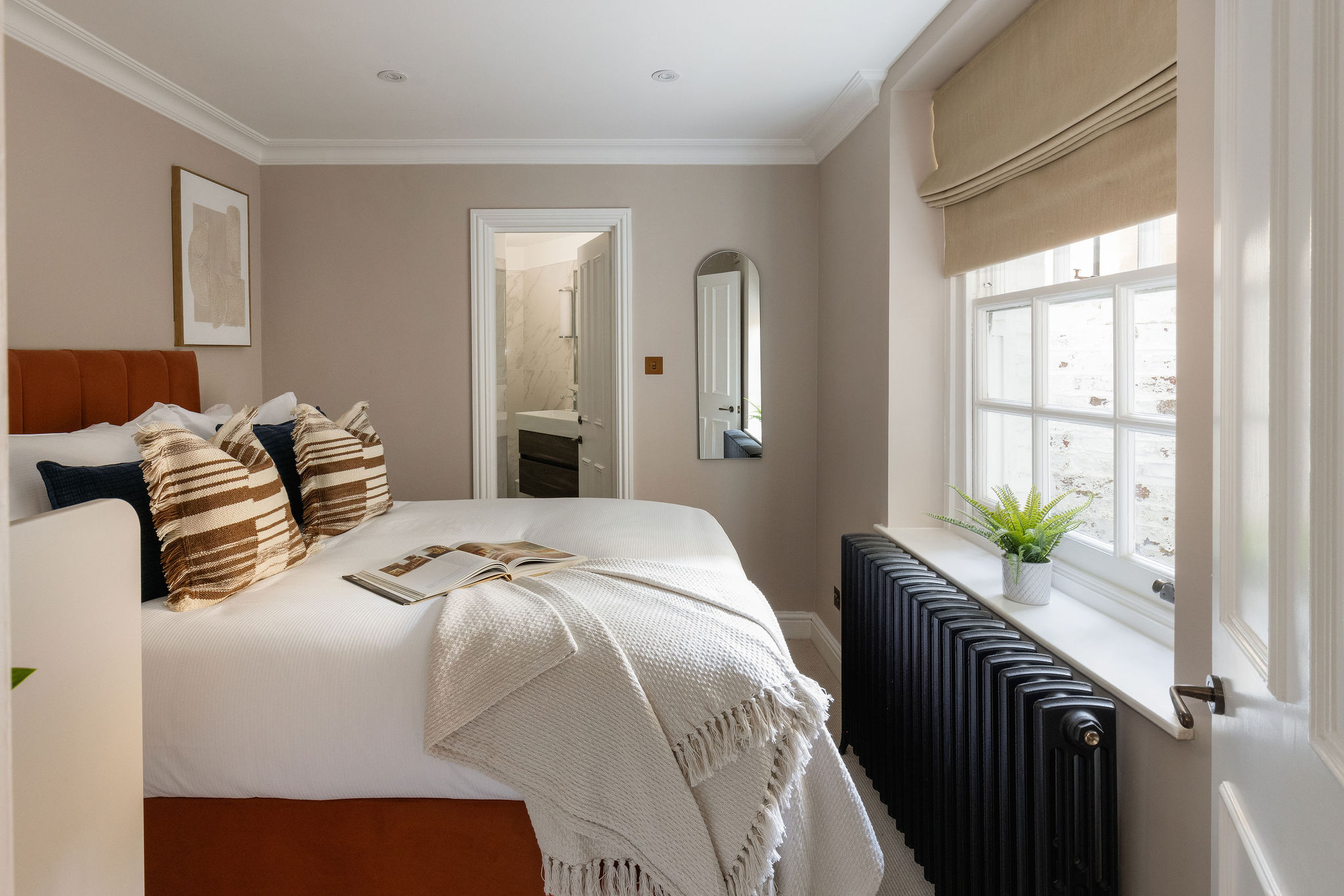 Our largest apartment at 98 sq. metres, the Three Bedroom offers spacious accommodation for families, groups, or colleagues. The master bedroom features a luxurious ensuite, with an additional modern bathroom for the other two bedrooms. The fully equipped kitchen includes a dining table, dishwasher, and wine cooler. The generous living room is perfect for relaxing or entertaining. With plenty of space to spread out and unwind, it’s the perfect base for longer stays in the heart of Kensington.