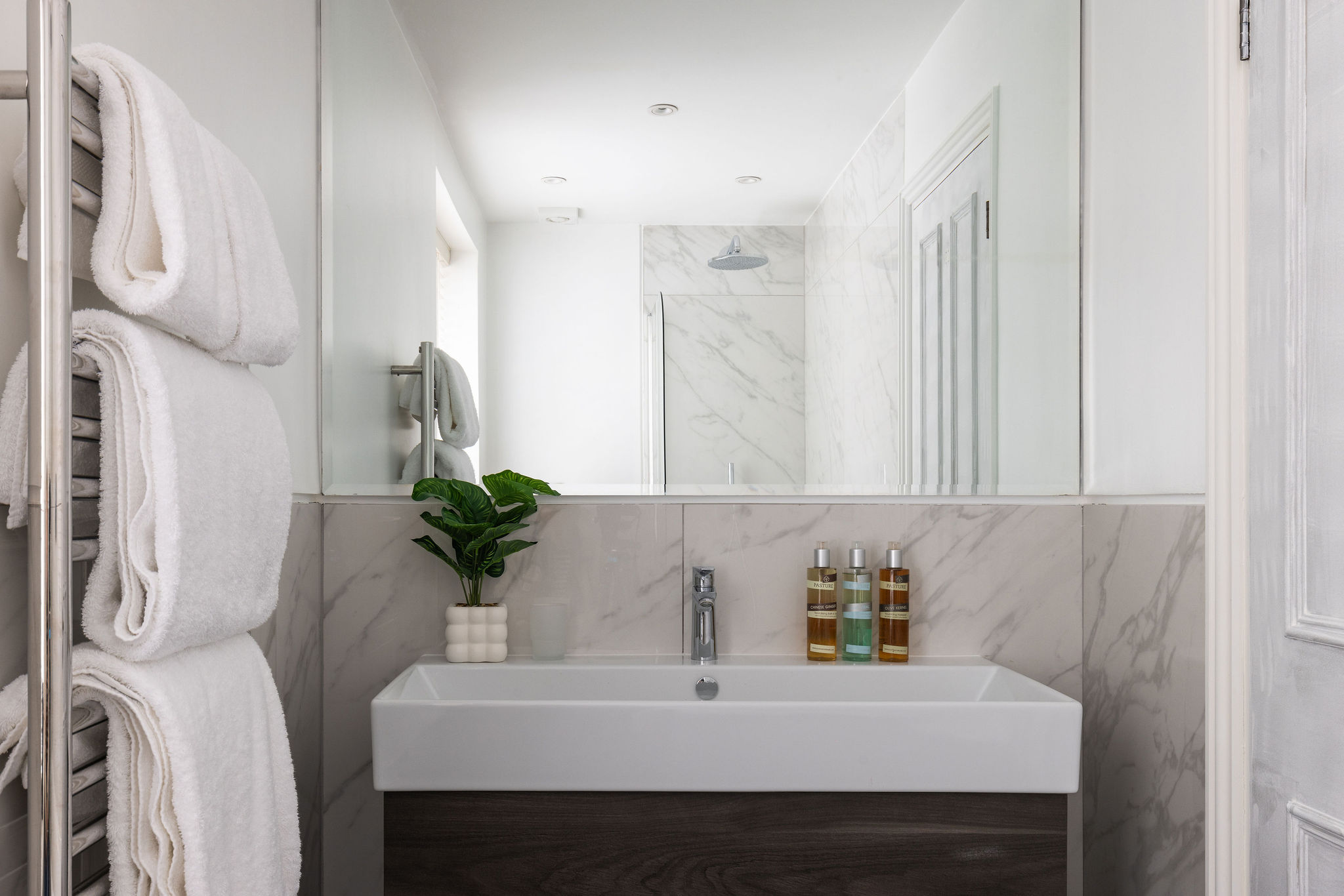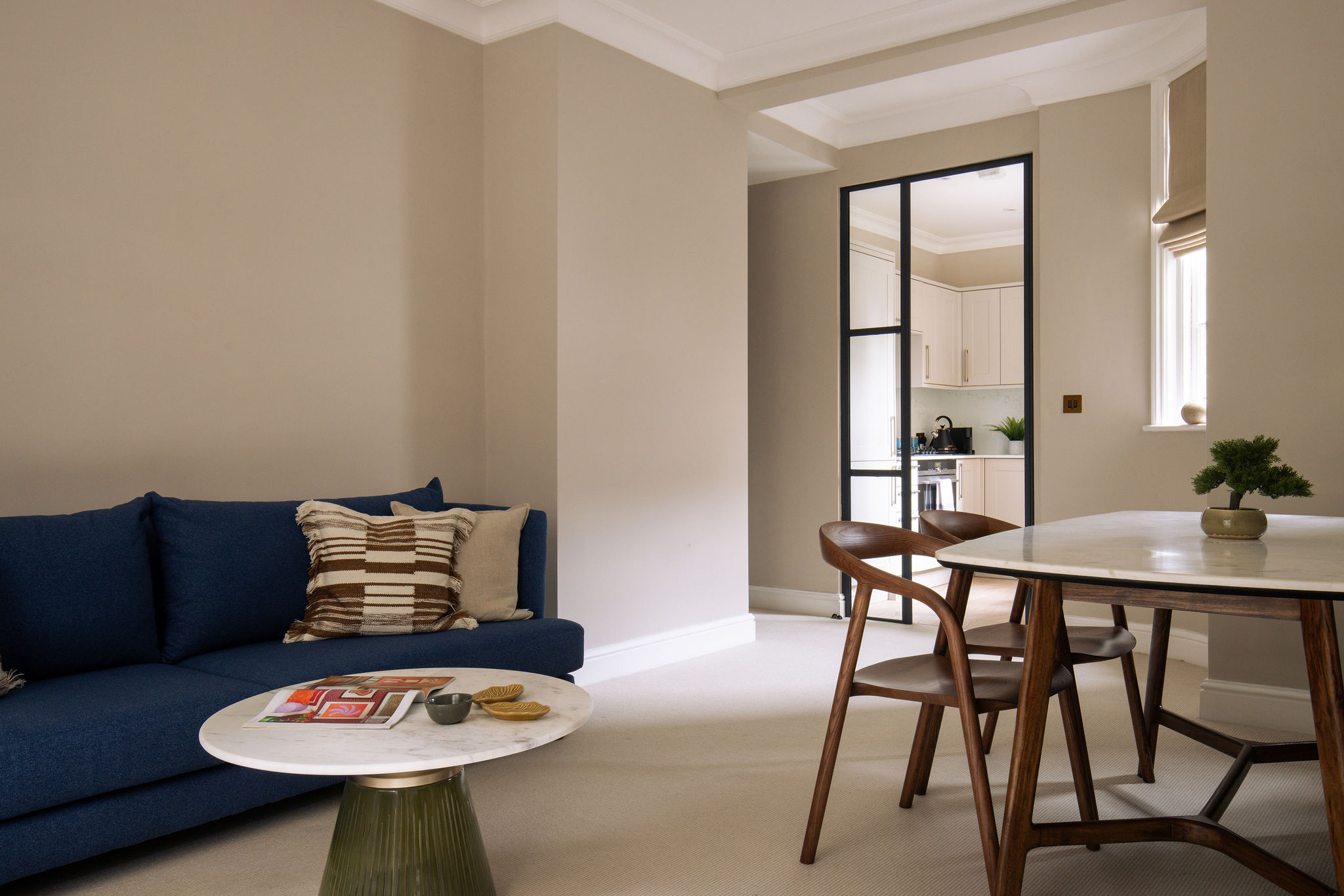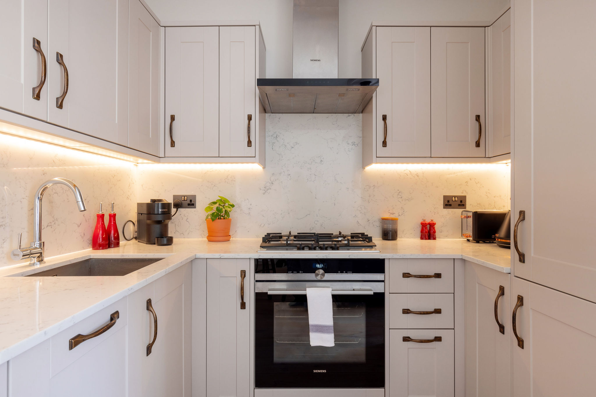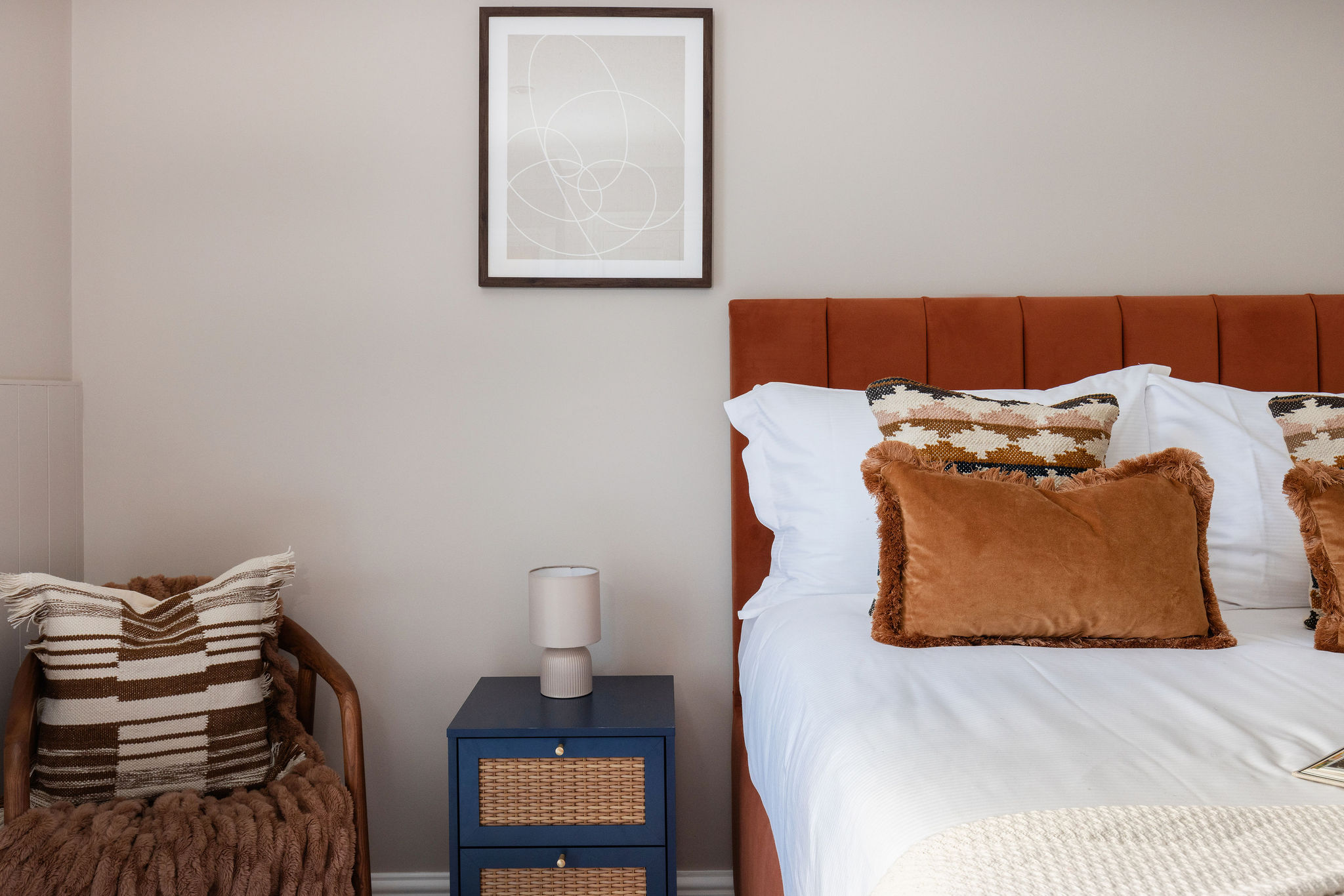 Our largest apartment at 98 sq. metres, the Three Bedroom offers spacious accommodation for families, groups, or colleagues. The master bedroom features a luxurious ensuite, with an additional modern bathroom for the other two bedrooms. The fully equipped kitchen includes a dining table, dishwasher, and wine cooler. The generous living room is perfect for relaxing or entertaining. With plenty of space to spread out and unwind, it’s the perfect base for longer stays in the heart of Kensington.