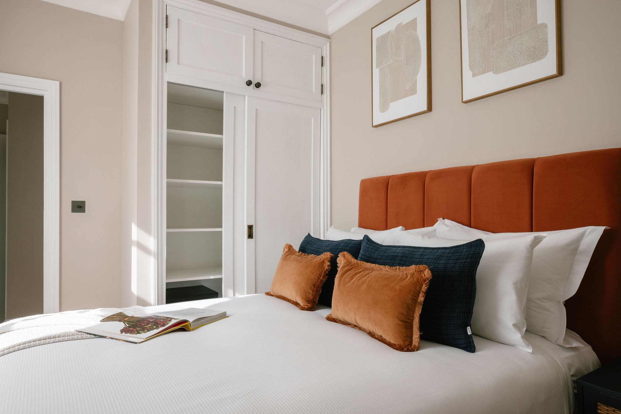 Spanning an impressive 72 sq. metres, our Two Bedroom Apartment offers generous space for families, colleagues, or friends travelling together. Each of the two stylish bedrooms comes with its own luxurious ensuite bathroom. The apartment also features a fully equipped kitchen with modern appliances, including a dishwasher and wine cooler, along with a large dining table for shared meals. A spacious living room provides the perfect spot to unwind after a day in the city, this apartment combines space, style, and convenience - making it the ideal home-from-home in Kensington.