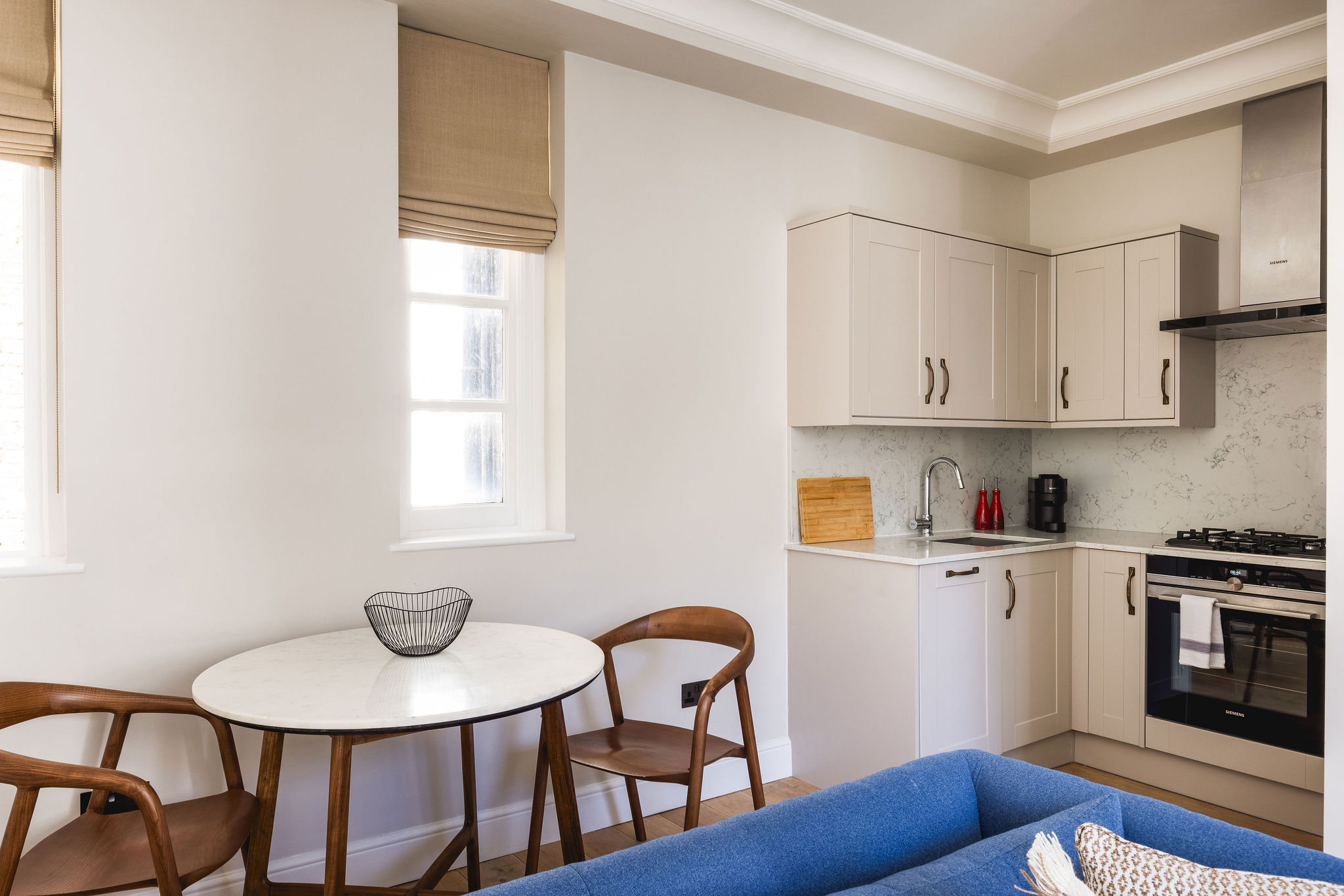 Recently refurbished, each apartment blends contemporary design with everyday convenience, featuring a fully equipped kitchen, a luxurious ensuite bathroom, a plush bed, and a comfortable living room to relax and unwind in. Perfect for business travellers, relocations, or longer London stays, FiveM Kensington offers a modern, hassle-free retreat in a truly exceptional location.